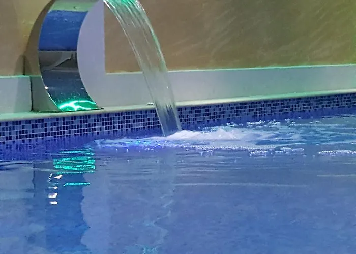 Gegen Mehrpreis werden ein Außenpool und Sonnenliegen zur Verfügung gestellt. Die Gäste können sich auch in einem Wellness-Salon entspannen.